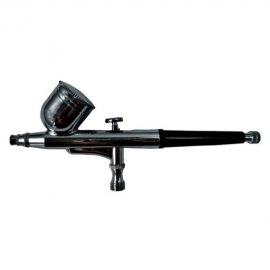 Costituito da una penna che spruzza il colore mediante un flusso d'aria compressa, il colore puo'essere di vario tipo come acquerello, inchiostro, olio, tempera, acrilico e a solvente.
