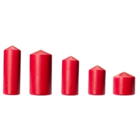 Bellissimo set composto da 5 candele in cera di colore rosso con misure diverse.