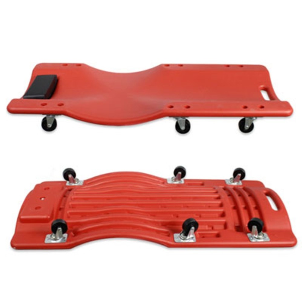 lettino per meccanico in plastica rinforzata, ergonomico, dotato di sei ruote con cuscinetti a sfera e morbido poggia testa.