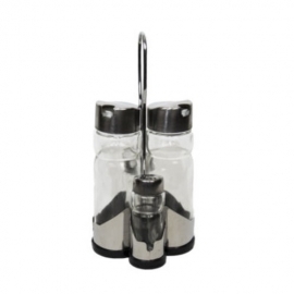 OLIERA 4 PEZZI IN ACCIAIO VETRO ORGANIZER DA TAVOLO OLIO SALE ACETO PEPE
