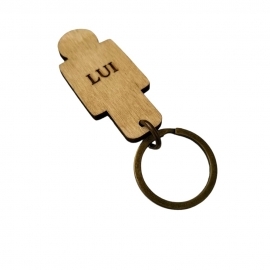 raffigura una casa con 2 omini di cui un uomo e una donna alle quali è possibile attaccare le proprie chiavi tramite gli anelli.