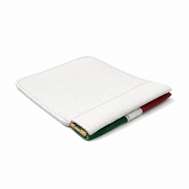 Portamonete unisex in vera pelle tricolore, realizzato artigianalmente in Italia nei colori verde, bianco e rosso della bandiera. Un accessorio elegante e funzionale, perfetto come porta monete uomo e porta monete da donna.