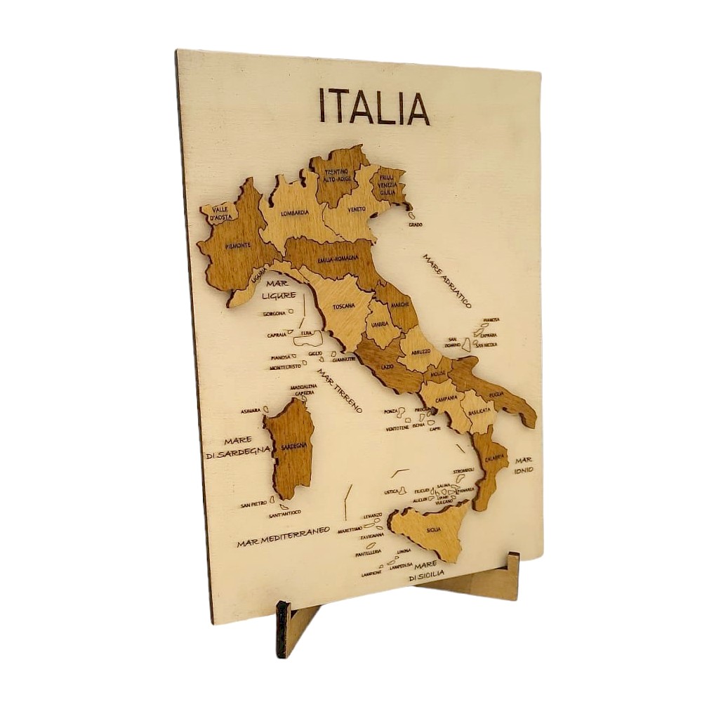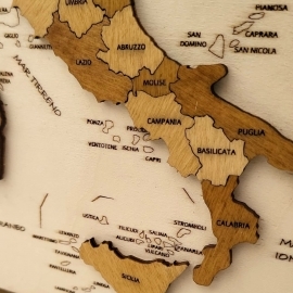 Cartina geografica in 3D realizzata in legno di pioppo con incisioni a fuoco