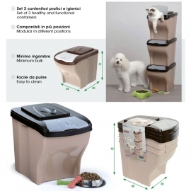 PATTUMIERA CONTENITORI 3 PEZZI POKER SET PLASTICA PORTA CIBO CANI GATTI BAMA PET
